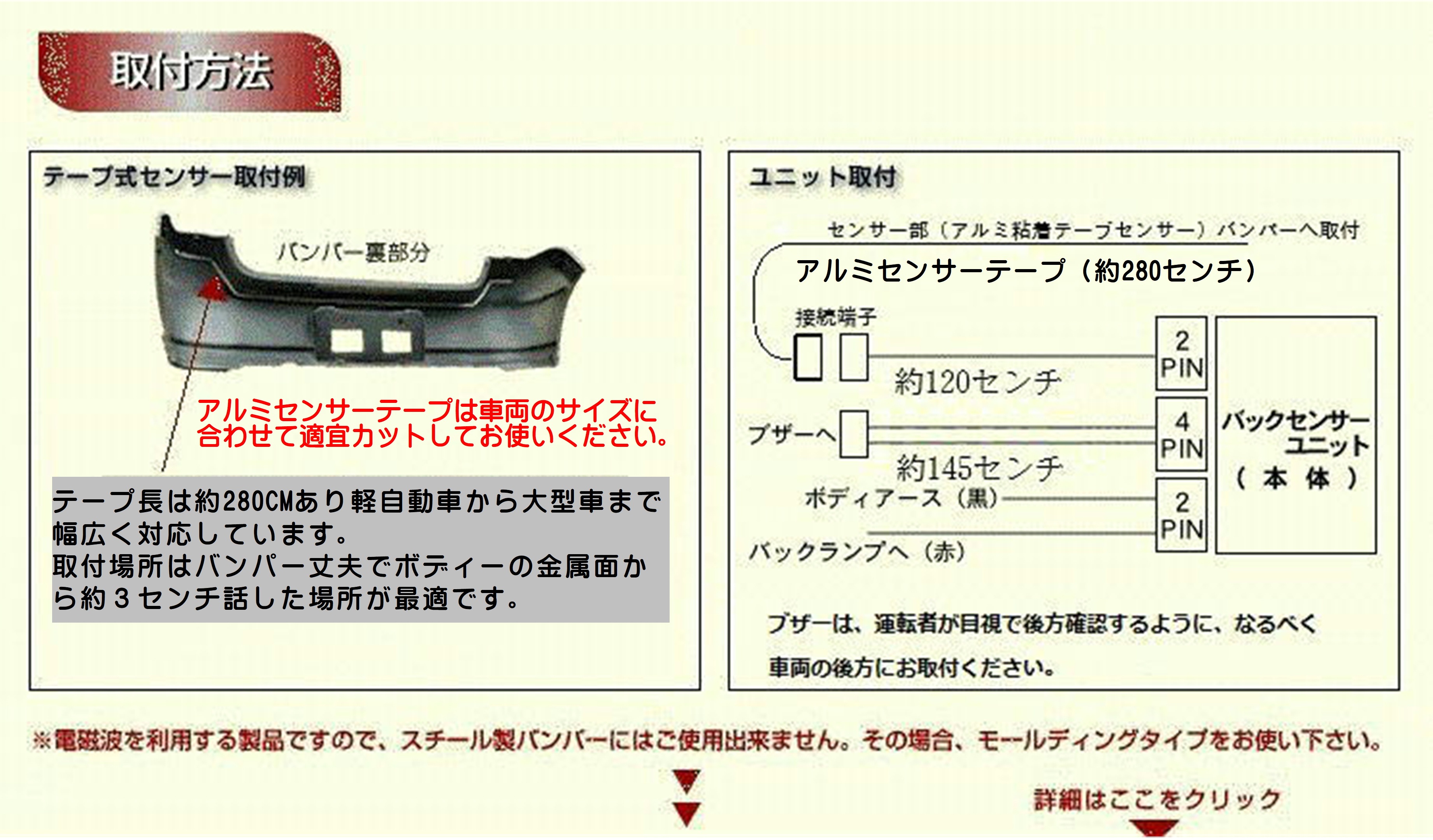 本製品の場合、バンパーの裏側に貼るテープ式なのでその心配はありません。